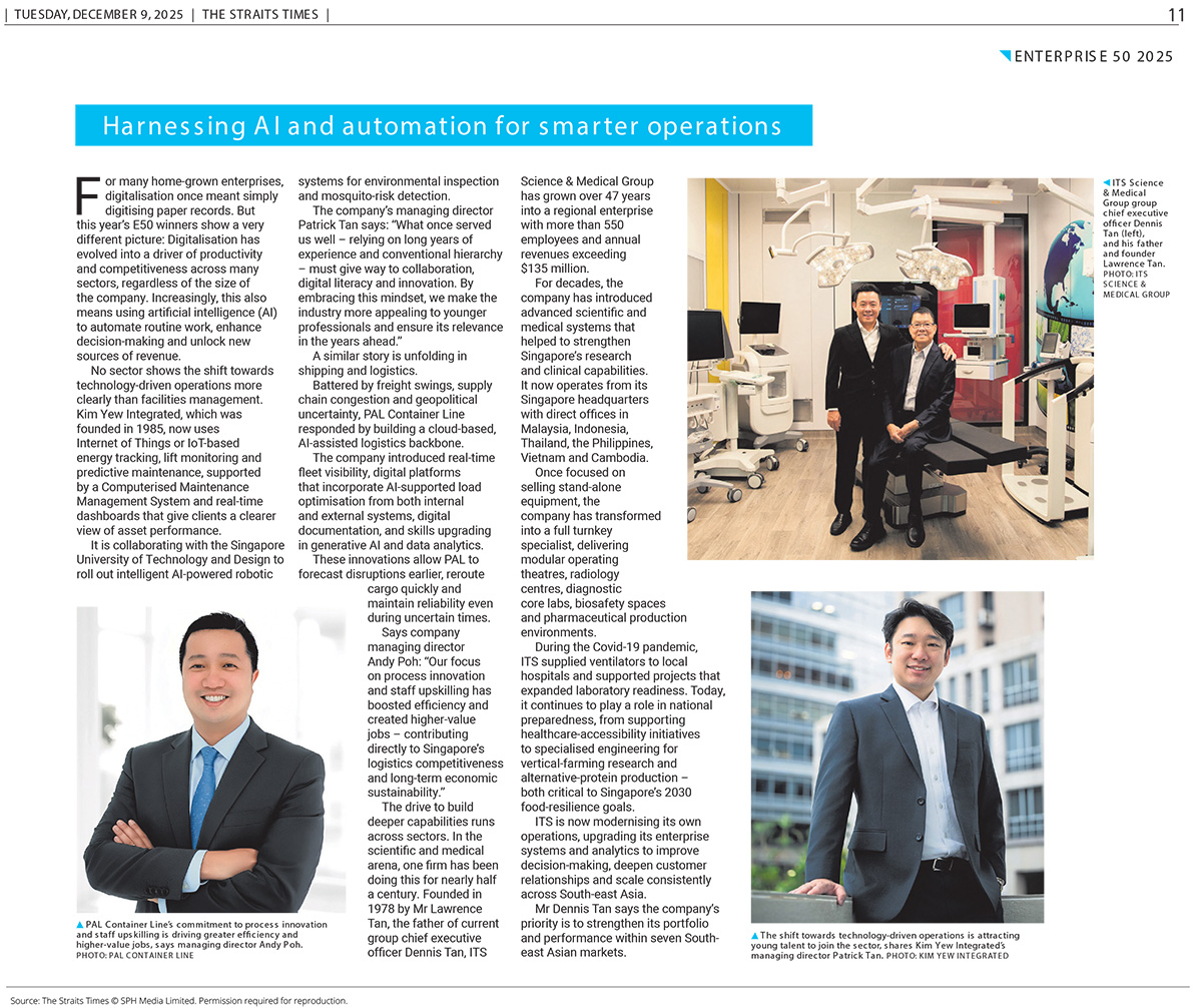 ITS Science & Medical Singapore is honoured to be ranked 16th in the Enterprise 50 Awards!